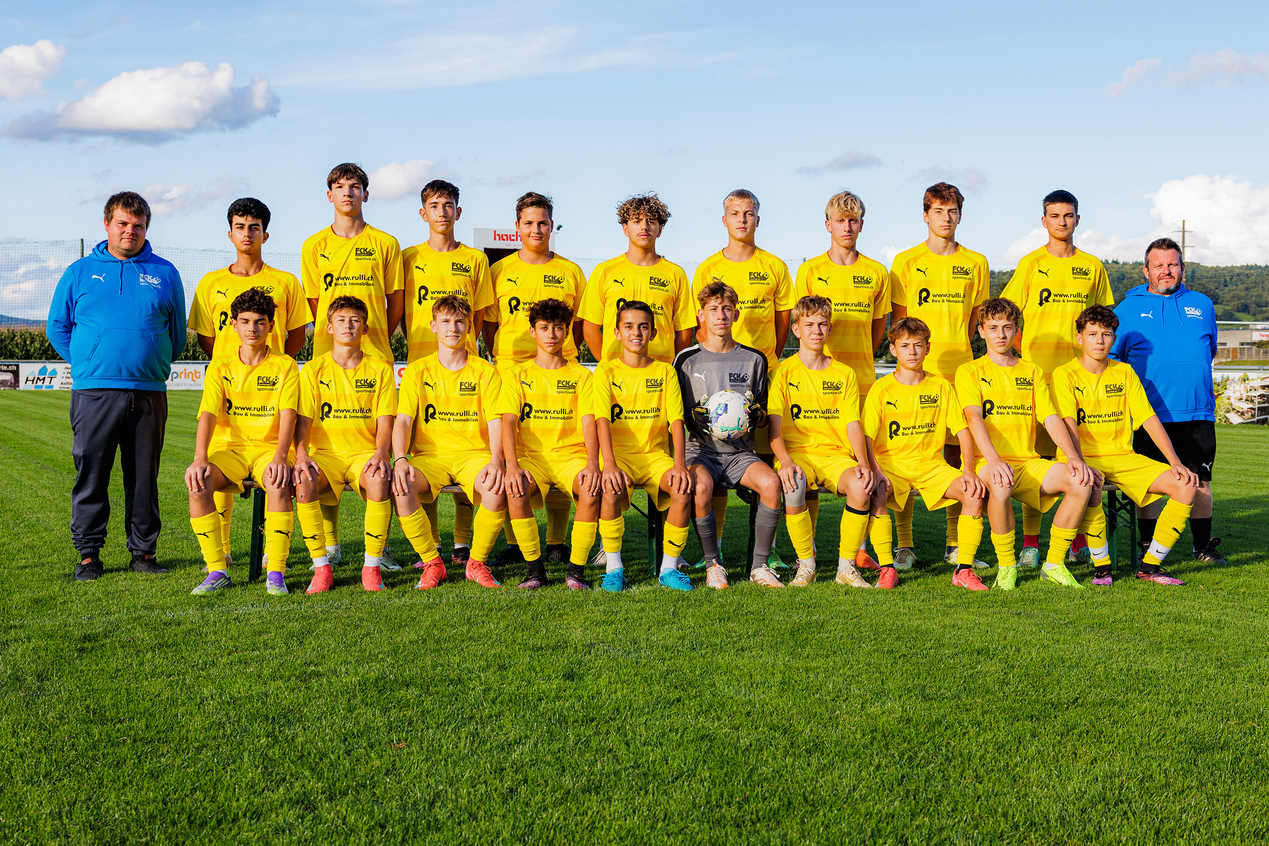 Unsere Ca Junioren mit ihrem Einlauf-Dress, das von der Wynamatt-Garage AG in Menziken gesponsert wurde.